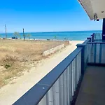 Das Apartment am Strand Mesaggala Palace No 5 Firstline Sea bietet einen Wohnbereich, einen Patio und einen Balkon und Annehmlichkeiten wie eine Klimaanlage. In der Unterkunft sorgen eine getrennte Toilette und eine Dusche für Ihren Komfort. Handtücher sind ebenfalls vorhanden.